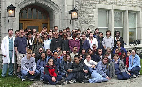 Class Picture 2003Jason and Carla co-instructed the Pathology course the week of May 14th, 2001. They hosted sixty highachieving Ontario high school students from both private and public school systems. These grade 11 through OAC students were enthralled with a variety of departmental tours, large and small group sessions, and a series of guest speakers. Nevertheless, without question, the highlight remained the opportunity to handle surgical specimens while sporting surgical gowns and gloves.